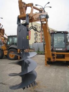 Шнековый гидробур состоит из гидропривода, шнека и крепления. Используется для бурения скважин, ям разного диаметра и глубины, установки опор для подмостков, мостов.