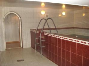 Сауна в Одинцово Сауна в Одинцово площадью 170 м.кв. с бассейном 2.6х3.6. Комната отдыха с постелью; бильярдная (русский 9 футов) с массажным креслом; раздевалка с простынями, полотенцами, тапочками. В большой парилке комфортно 8-10 человек можно с вениками. Комната отдыха с банкетным столом всегда чай, сахар, минералка, набор посуды на 10-20 чел. TV. DVD –караоке, кинотеатр, СВЧ, холодильник. Алкоголь и продукты можно приносить с собой. Охраняемая автостоянка с крытым мангалом на улице при входе. Цена до 10 чел-1000 руб/час. Фото и схема проезда есть на сайте
