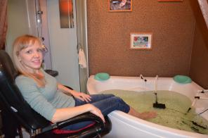 Рыбки нежно и тщательно удаляют исключительно отмерший слой кожи, обрабатывают ферментом, тем самым делая массаж, вы испытываете новые, несравнимые, приятные ощущения.