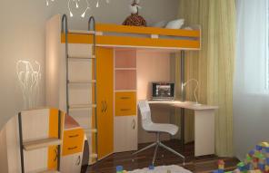 Детская стенка М 85 (Орбита) Кровать чердак м 85 (Орбита) может быть выполнена в основном цвете: ольха, орех, мролчный дуб и дополнительными цветами: дуб молочный, оранжевый, синий, зеленый (текстиль), венге, розовый. Аналог кровати чердака Орбита и кровати чердака Карлсон. Универсальный криволинейный выдвижной компьютерный стол. Кромка столешницы оклеена пластиком. Детская М 85 занимает площадь всего 1,6 м2 вашей комнаты. Кровать чердак с рабочей зоной м 85 для взрослых детей от 3-х лет. Стоимость одноцветной детской м 85: 11500 руб. Стоимость двухцветной детской м 85: 11900 руб. Стоимость матраса из искусственного латекса 200х80 ( 2600 руб.) Доставка по Москве 700 руб. Сборка 1000 руб. Подъем 200 руб. лифт. Оплата за товар при доставке.