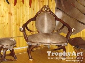Изготовление мебели на заказ. Массив дерева. Резьба по дереву. Рога животных. Изготовление и продажа эксклюзивной мебели из массива дерева. Уникальное сочетание резьбы по дереву с рогами и шкурами животных. Авторская мебель в охотничьем стиле - готовые изделия Вы можете увидеть на нашем сайте. Изготовим любую мебель по Вашим эскизам или разработаем ее, исходя из Ваших пожеланий. Оформим интерьер охотничьего домика, ресторана, гостиницы.