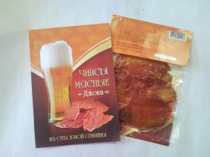 Мясные чипсы - это абсолютно новый продукт на рынке снэков, представляющие собой тонко нарезанные пластины толщиной до 2 миллиметров из натуральной говядины или свинины с добавлением специй, приготовленные по особой технологии. В этих сушено-копченых мясных снэках, несмотря на легкий вес, сохраняется вся питательная ценность, которая содержится в целом куске свежего мяса.