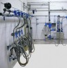 Молокопровод из стеклянных труб с подъёмниками из нержавеющих труб;