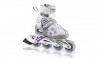 Бело-фиолетовые раздвижные роликовые коньки для прогулочного катания.