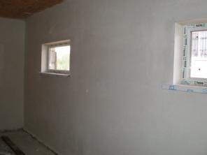 Работу производим реечными и струнными маяками. Штукатурку осуществляем машинным способом.