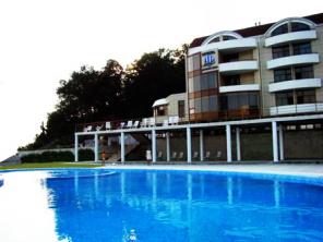 На ухоженной территории возле корпуса располагается бассейн с пресной водой, всего в 15-ти метрах от моря, зонированный для детей и для взрослых. На территории отеля находятся уютные «срубы» - беседки, расположенные на живописной альпийской горке, где вы можете пообедать всей семьей.