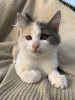 Спокойная, ласковая добрая домашняя кошка Лаура - обладательница шелковой белоснежной шубки и больших зеленых глаз.