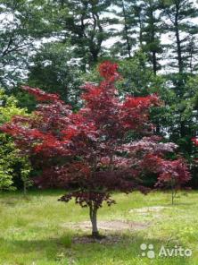 Клен веерный Бладгуд 30-40 см красный Клен веерный Бладгуд Клен Bloodgood - древовидный кустарник с широко-шаровидной кроной и перистыми листьями, высотой до 4-6м и шириной до 4м. Листья 5-7 лопастные, меняющие цвет в течении сезона от темно-пурпурных до черно-красных летом, до ярко-багряно-красных осенью. Листья супротивные, 5-10 см в длину и до 12 см в ширину, рассечены до середины