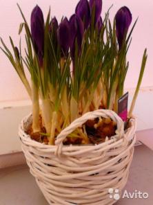 Крокусы горшечные в корзине Крокусы горшечные в корзине. Стоимость, наличие и размер уточните при запросе у специалиста. Возможна доставка в день заказа по Москве и МО, от 2-х дней по России. От 5 шт. дешевле.