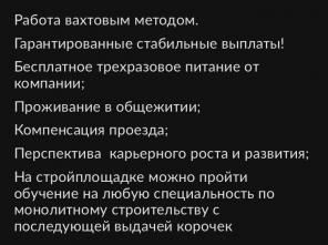 - Вахта: 30/30; 45/30; 15/15 (можно продлевать)